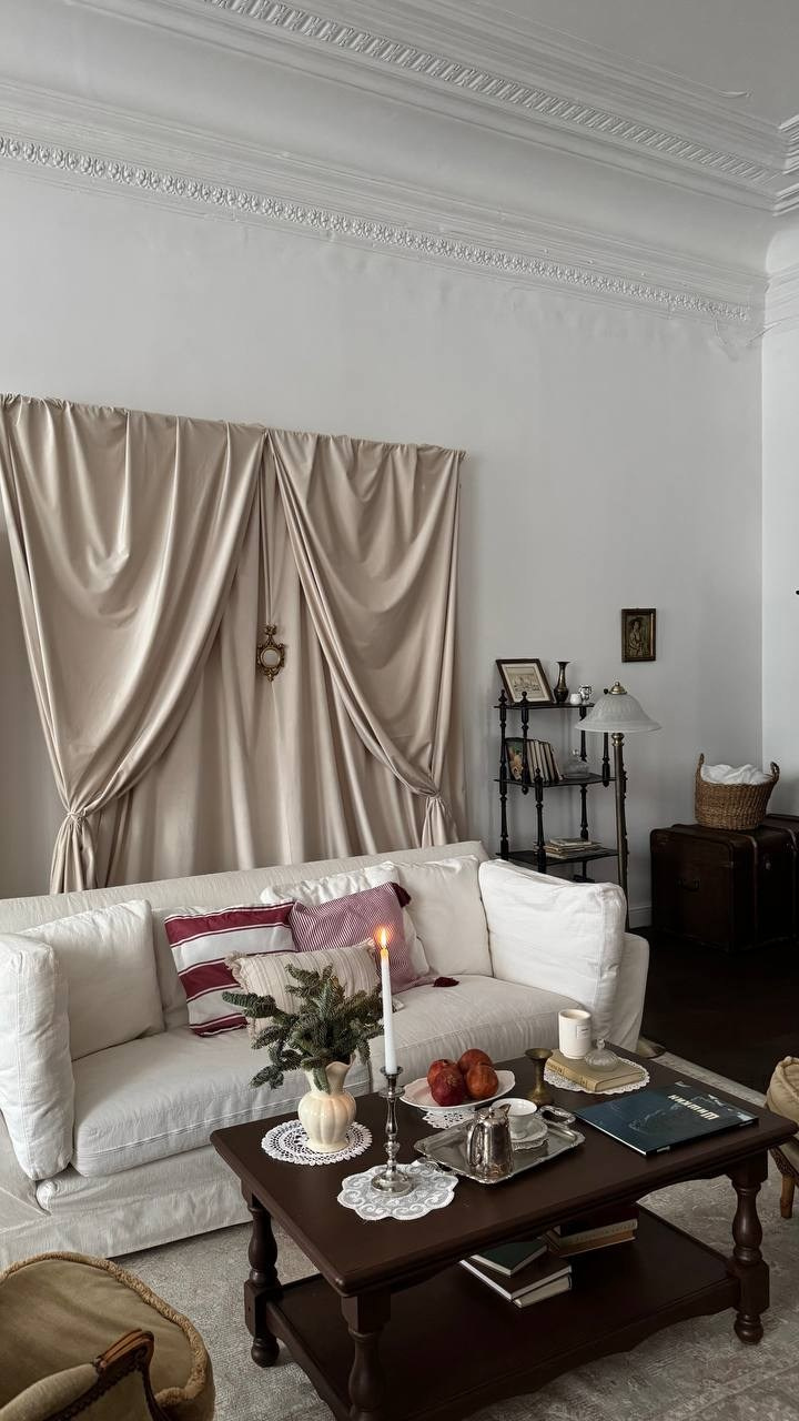 Этот проект про ощущение перехода, здесь ещё нет насыщенных красок, только белизна, но уже чувствуется свежесть и легкий бриз, тонко струящийся с первыми прозрачными лучами межсезонья из окошка.